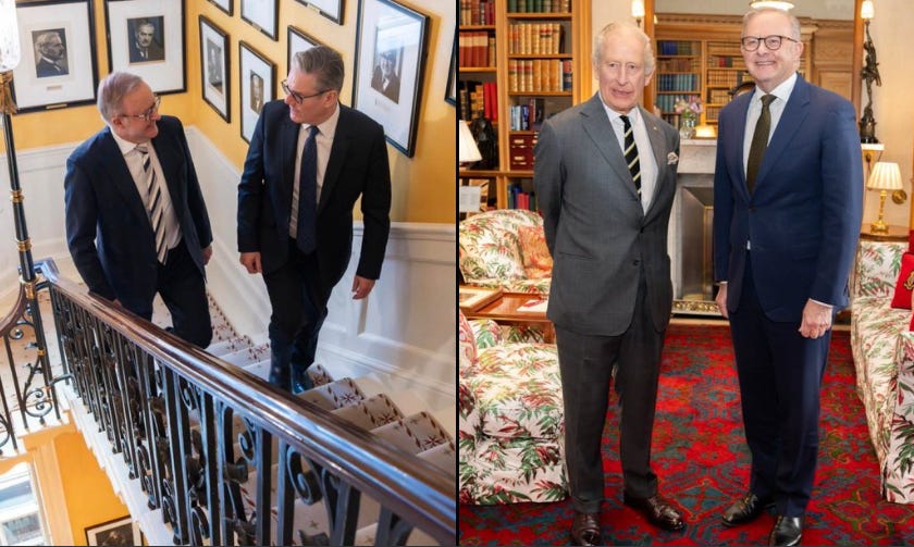The PM returns home, via another trip to the UK with another set of selfies with the most unpopular Labour leader in history, none the wiser about the fate of his country, and unable to read through the brand-new tea leaves at the base of his legacy teacup. After what could be seen as an essentially worthless recognition of a state Israel has vowed openly to prevent existing, Albanese thought it was a good idea to put his endorsement behind Tony Blair, architect of the Iraq war, as a great candidate to be the warlord who oversees a future redevelopment in Gaza. And unbeknown to himself, or maybe by design, the ALP under Albanese is drifting further towards a UK Labour model, one that claims to have no “left hat or right hat” when making major decisions.