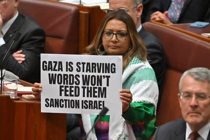 French President Emmanuel Macron, wrote a letter recognising the State of Palestine, joining a growing majority of nations, including a western bloc, who are putting actions into place to work towards stopping the killing in Gaza by the rogue state of Israel. But the day after his Foreign Minister censured a Greens senator for holding up a sign to raise awareness to the tragedy in Gaza, regardless that his government had suspended UNRWA aid, while it continues to provide military components to Israel, openly gives Tel Aviv diplomatic and trade normalcy, and despite the botched the appointment of an antisemitism envoy that was trying to change laws altering the fabric of our society, Anthony Albanese posted another variation of paper thin words, another combination of cowardice.