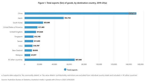 Australia has 25 million citizens living in the Indo-Pacific, France has nearly 2 million. The United States has 375,000 military personnel stationed in tenuous postings on the island chains and peninsulas of the Indo-pacific. The United Kingdom, now deep in the mounting realities of Brexit, is further away from the Indo-Pacific in body, mind and soul than most developed nations in the OECD. Our partners do not share the economic reliance, nor the geographical proximity that we do with China. Whilst the USA has long set out on a journey to decouple the US-China economies, and the UK has delineated its disputes from a great distance, Australia has talked a discordant narrative that ignores the enormous elephant in the room: concentrated reliance on trade with China.