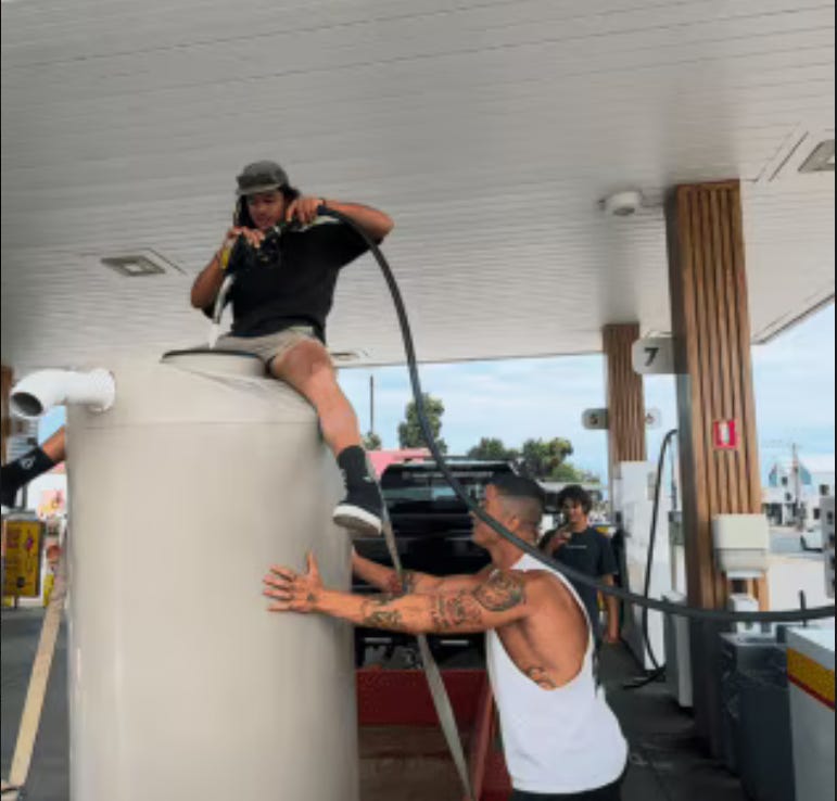 The division of labour nebulised under neoliberal offshoring is compounded in a vast land poorly serviced by rail, and over-reliant on road-trains that run across the swathe of Australia hostile lands to reach rural towns and population centres that dot this largely uninhabitable country. Generators run remote communities, remote hospitals and police stations, the extracted wealth that is dug by thirsty multinationals mining companies who pay no tax, is done so with the same sovereign volume of fuel used bu ambulances and fire trucks. Who is dolling it out?